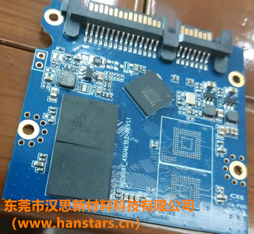某客戶從事SSD固態(tài)硬盤產(chǎn)品研發(fā)與生產(chǎn),需要在固態(tài)硬盤主控芯片上使用底部填充膠進行BGA填充。主控芯片的尺寸:1CM*1CM,錫球數(shù):155,球距:0.35MM,球徑0.25MM。固化方式:7MIN@150℃。根據(jù)客戶的應(yīng)用要求,漢思化學(xué)推薦使用底部填充膠HS710,客戶使用后反映滲透效果很好。
