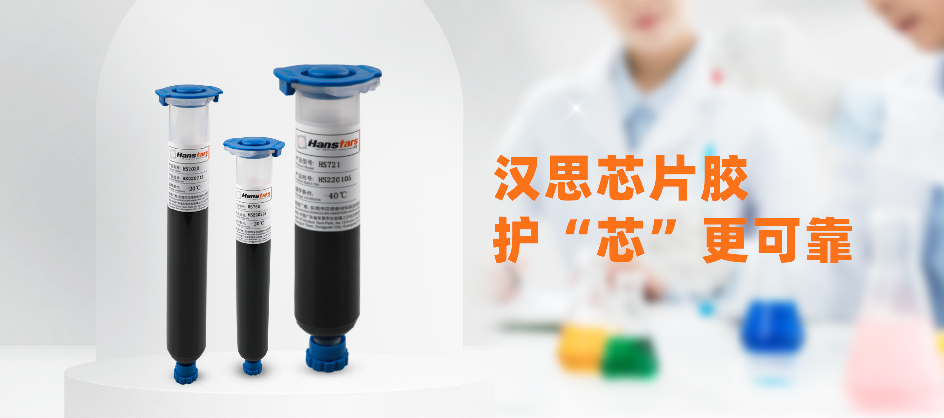 漢思新材料在芯片膠、底部填充膠、電子芯片封裝膠、環氧膠的研發上深耕10幾年,產品配方成熟,性能穩定,擁有自己的化學博士研發團隊和生產工廠,在業內有著良好的口碑,產品線全,適合客戶不同產品和工藝要求,技術儲備雄厚,可根據客戶具體需求進行定制調整;具備完善的模擬測試產品的試驗能力;可以和客戶共同開發新工藝解決方案。