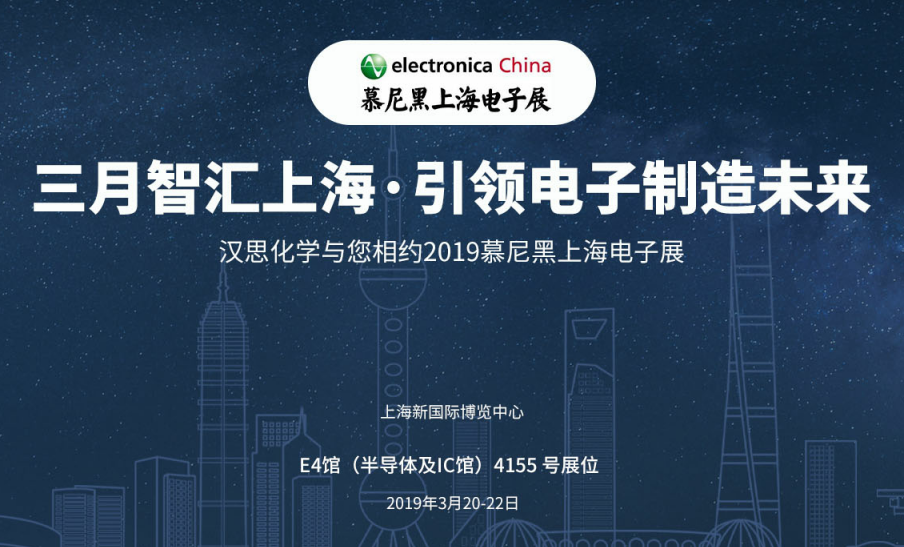 這個三月,與您相約,與漢思化學相約,2019慕尼黑上海電子展,我們不見不散!