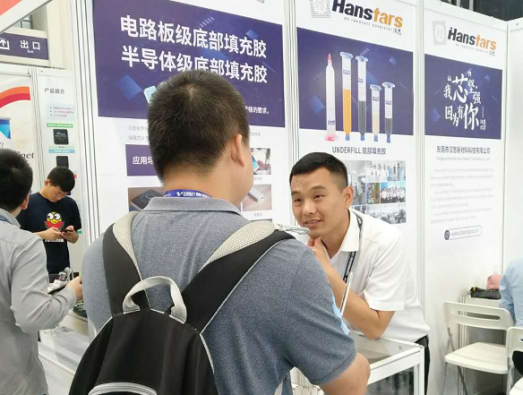 走訪展會可以看到, 雖然已經是開展的第二天,但現場依舊火爆,人來人往。其中,國內領先的電子工業膠粘劑研發廠商,東莞市漢思新材料科技有限公司繼昨天的強勢吸睛,今日依然保持著超高的人氣,成為電子科技盛宴上的一大亮點,引發關注。