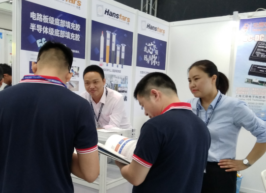 展會現場,漢思化學于9號館9B900重點展示了其自主研發生產的拳頭產品——UNDERFILL底部填充膠。展臺前氣氛火爆,主要是從事電子制造業的采購商和技術工程師正在與漢思化學的工作人員進行洽談,據現場反饋,漢思化學此次參展的UNDERFILL底部填充膠以及相關應用解決方案,得到了眾多企業采購商的高度認可。