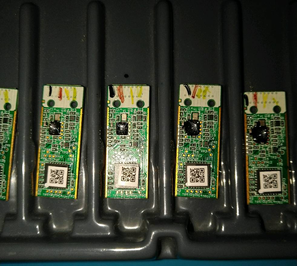 工藝難點:整個發射器板卡裝配的時候,塑膠外殼要用超聲波進行進行焊接,由于超聲波焊接35K高頻振動對焊球的應力損傷相當大,造成裝配好的發射器無法和藍牙耳機信號交互配對,不良率高達80%,客戶已經采用其它多種方式方法對芯片進行機械加固,但是仍然無法解決問題。后經我司工程師分析原因并結合該芯片的規格參數,可靠性測試條件,再推薦適配的BGA底部填充膠,問題得以解決。